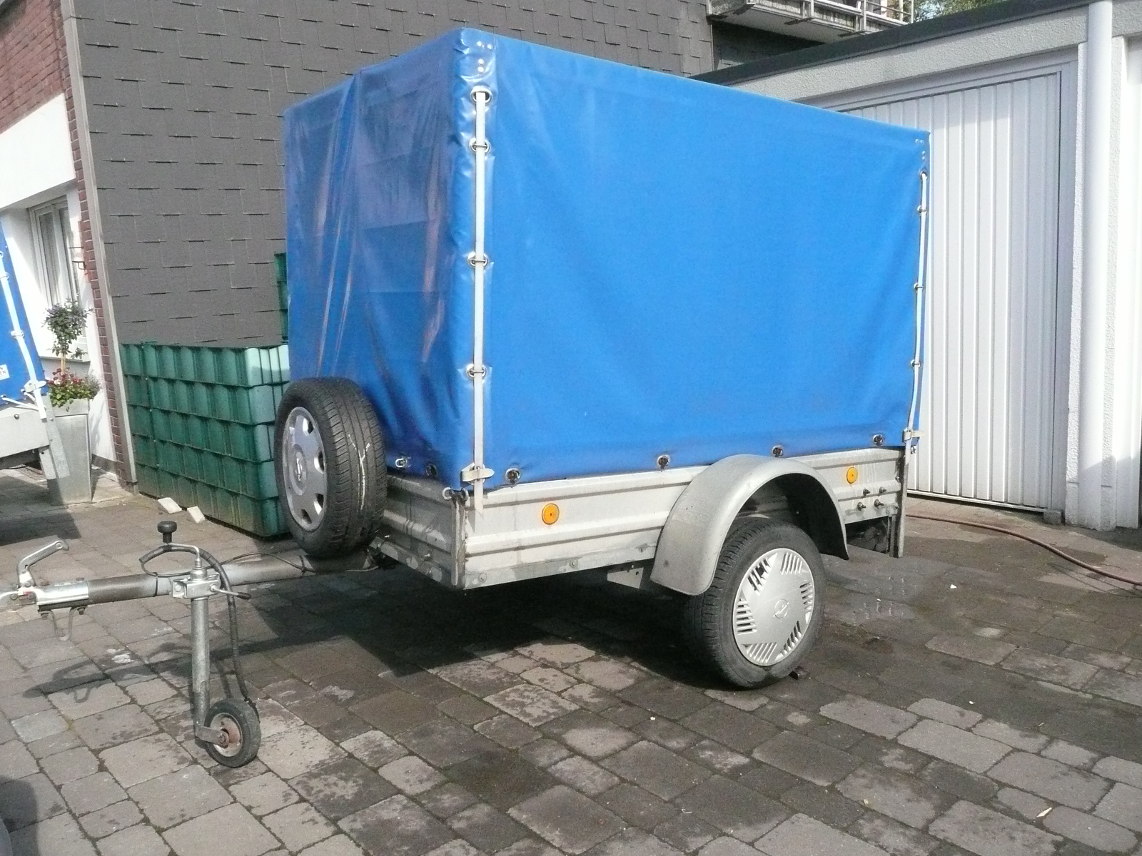 Ausstattung: Einachser, ungebremst, Stützrad, Reserverad, Schrägdach, Adapter (optional)